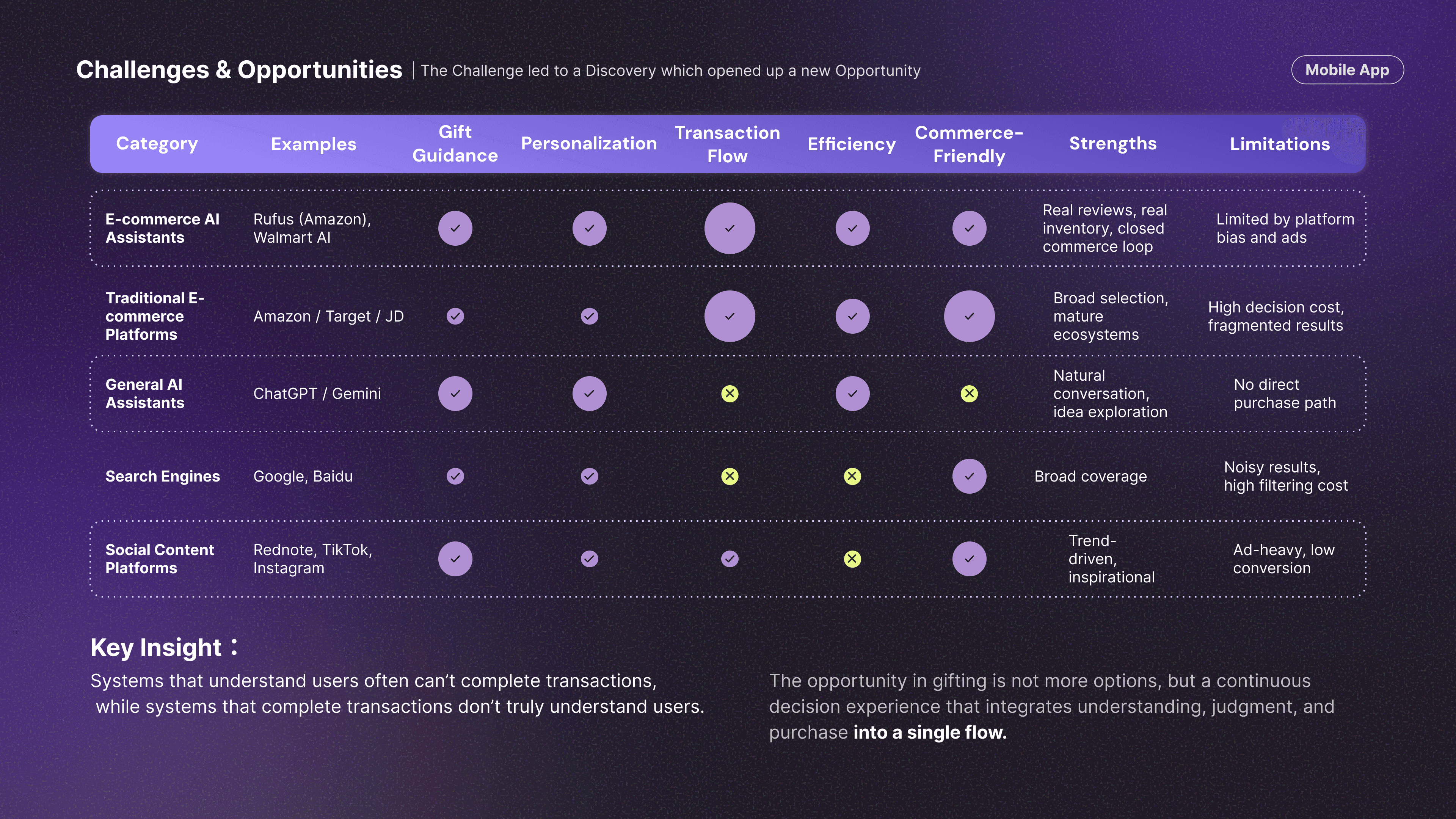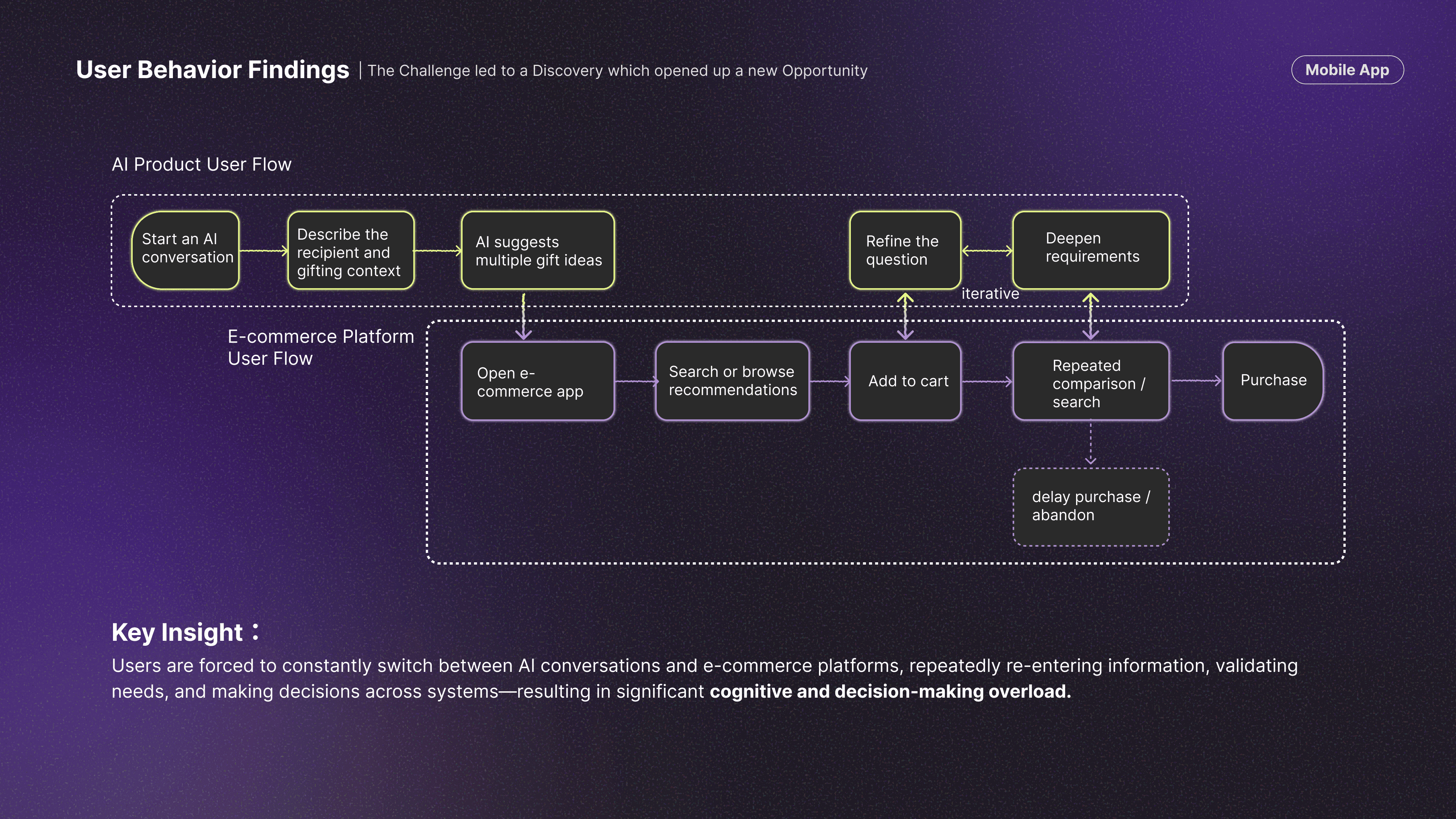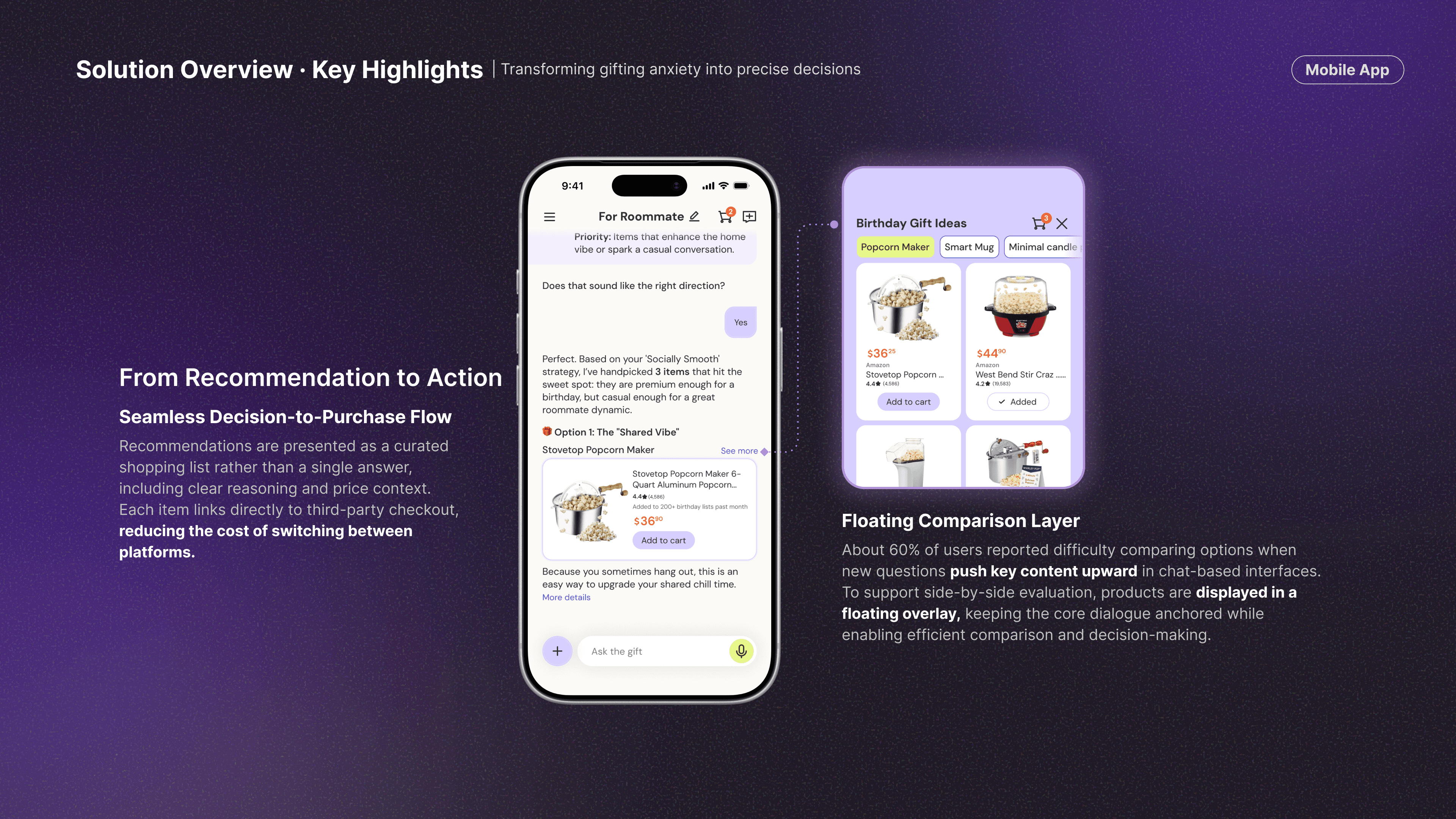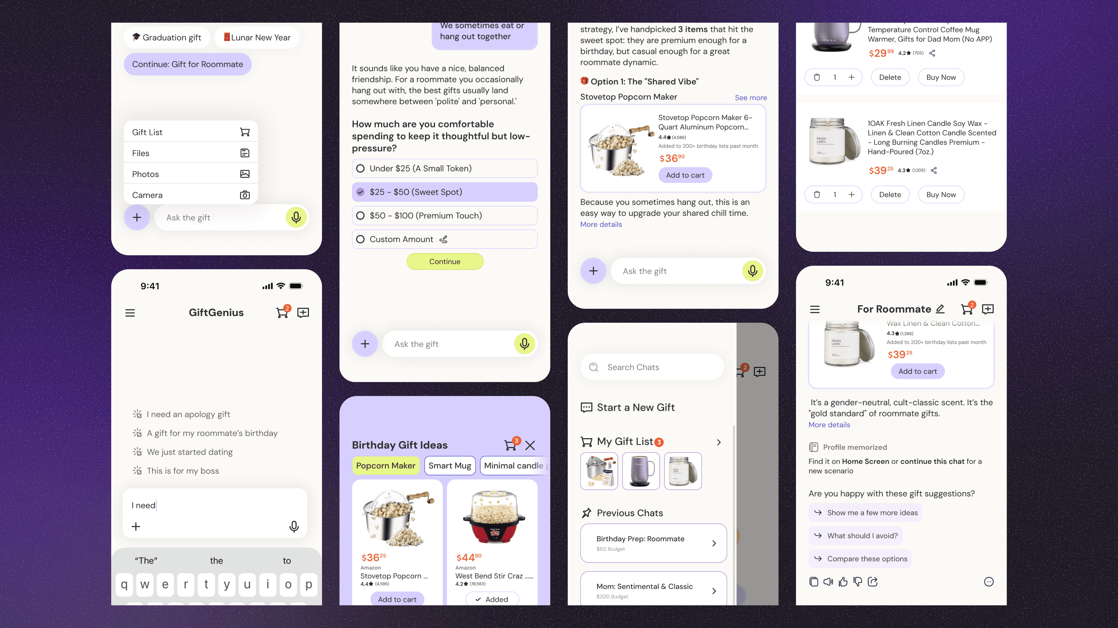 GiftGenius is an all-in-one AI-powered platform that delivers personalized gift recommendations based on relationship, context, and user intent. I led the UX strategy and end-to-end product design, from user research and prompt framework development to interaction design and system structuring.